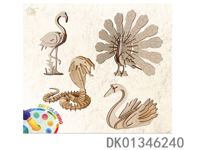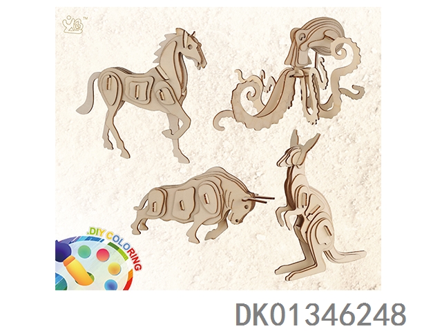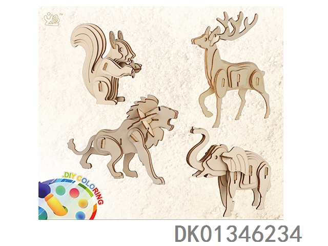 4 3D wooden animal puzzles