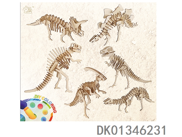 6 3D wooden dinosaur puzzles
