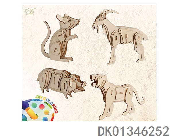 4 3D wooden animal puzzles