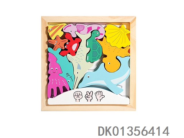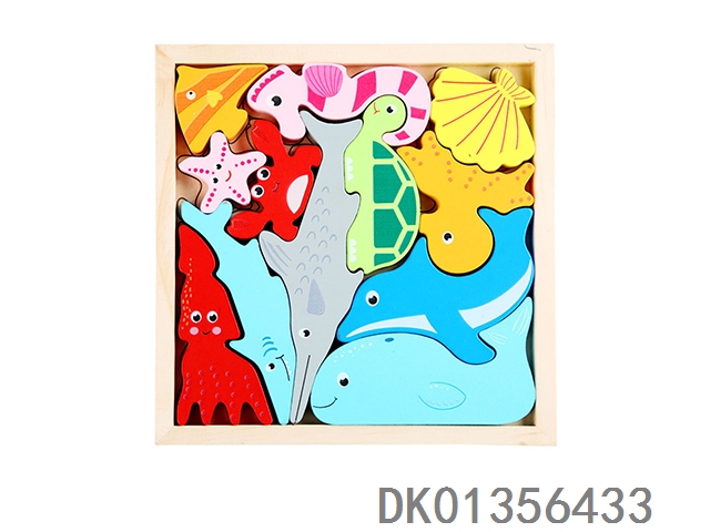 Wooden 3d puzzle stacking music 2-in-1- marine organisms