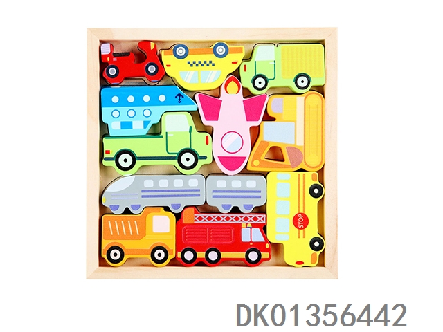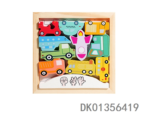 Wooden 3d puzzle stacking music 2-in-1- transportation vehicle