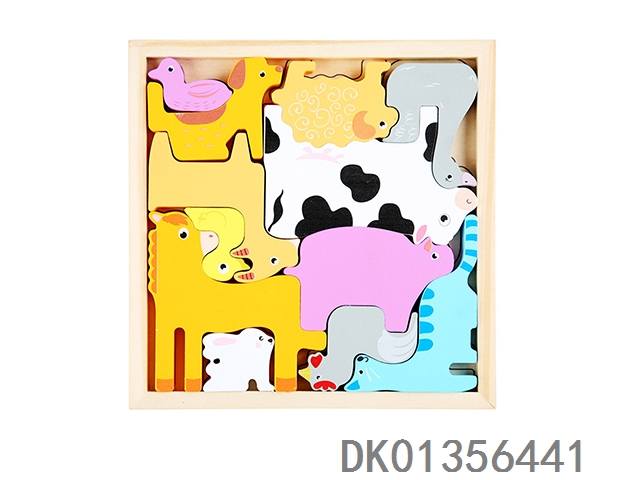 Wooden 3d puzzle stacking music 2-in-1- farm animals