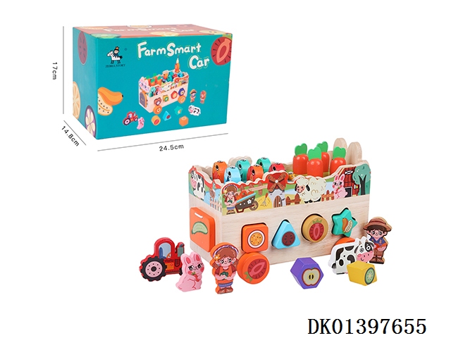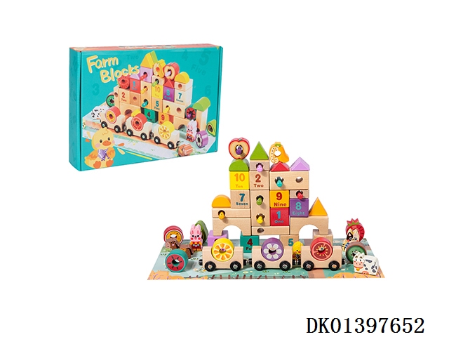 Wooden creative farm building blocks train