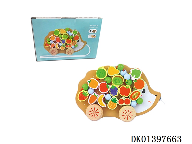 Wooden hedgehog fruit bead tractor
