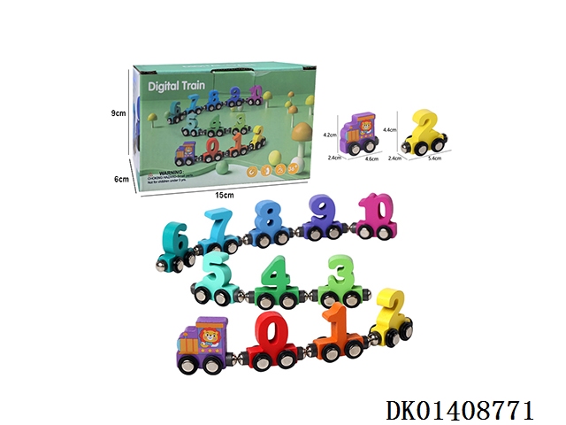 Wooden magnetic digital train puzzle toy