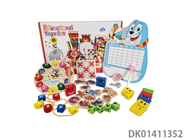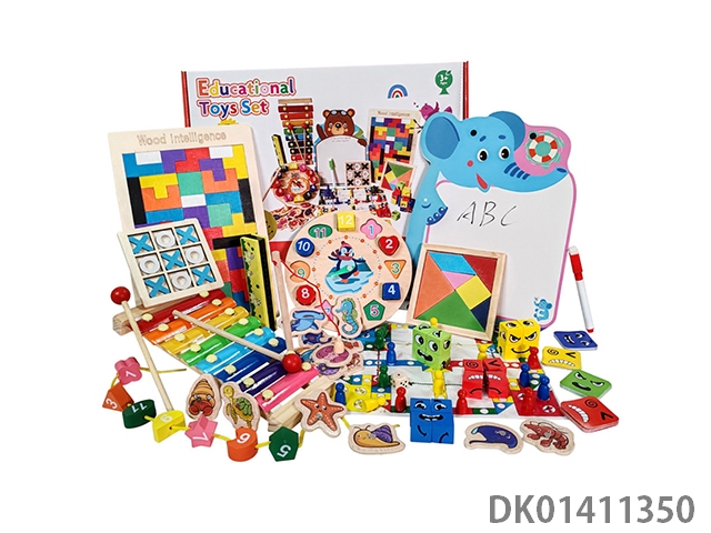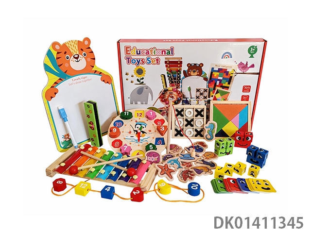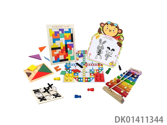 Wooden rubik’s cube, piano, drawing board, clock, puzzle toy set, 10 piece set