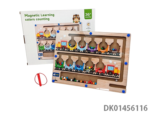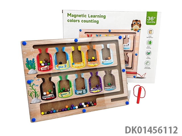 Wooden letter maze, pen running and ball rolling