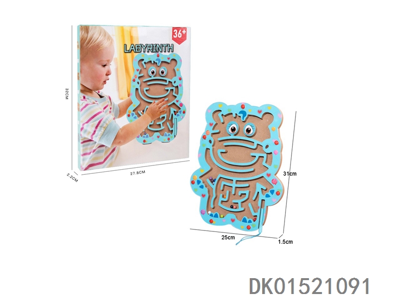 Wooden animal pattern pen movement magnetic maze ball toy