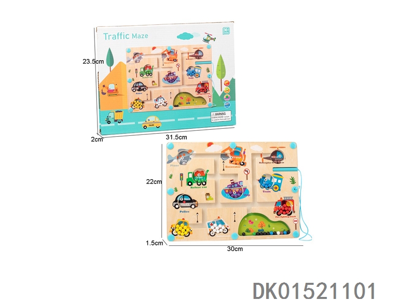 Wooden traffic pattern pen magnetic maze ball toy