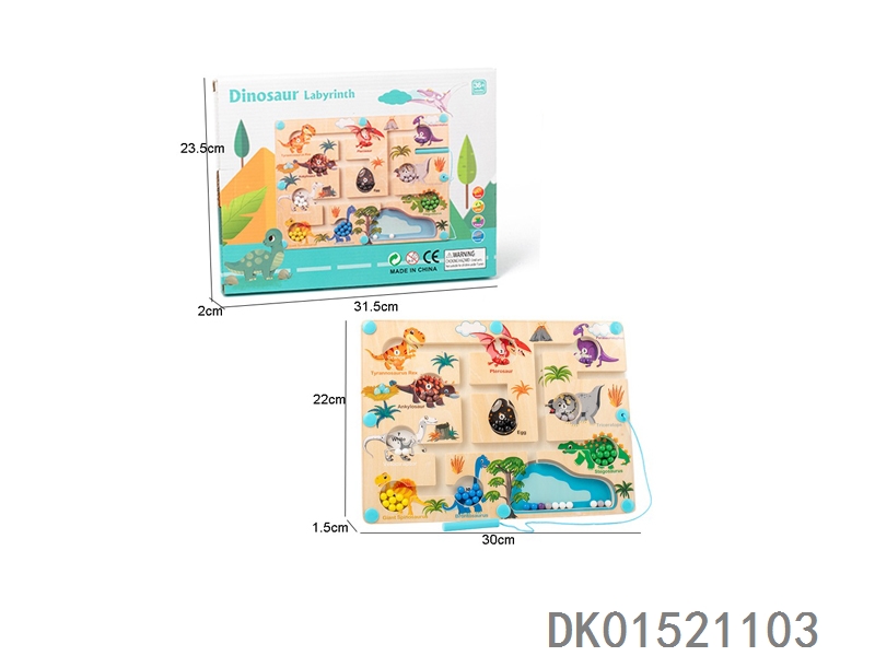 Wooden dinosaur pattern magnetic maze walking toy