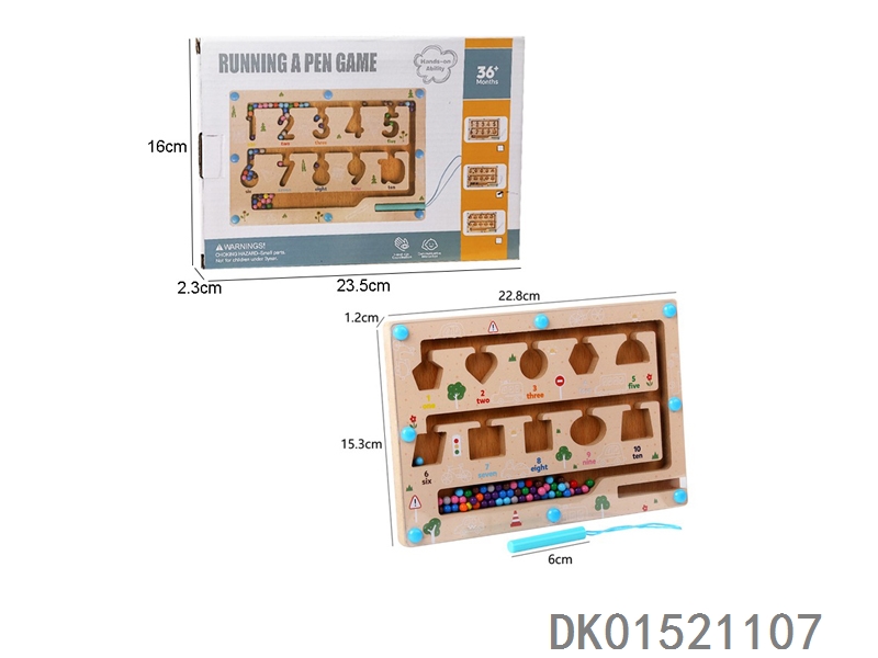 Wooden digital geometric pattern pen running magnetic maze ball toy