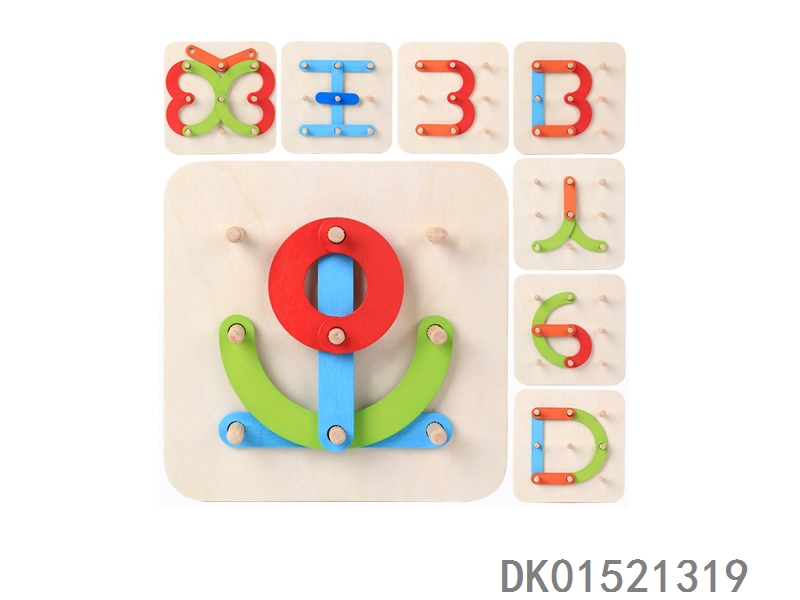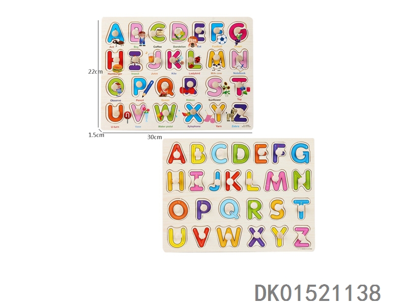Wooden hand-held board with large letters, two mixed puzzle toys
