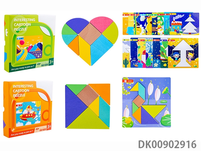 Wooden heart-shaped tangram (9 blocks, 7 blocks, 2 mixed)