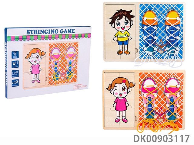 Wooden shoelace puzzle