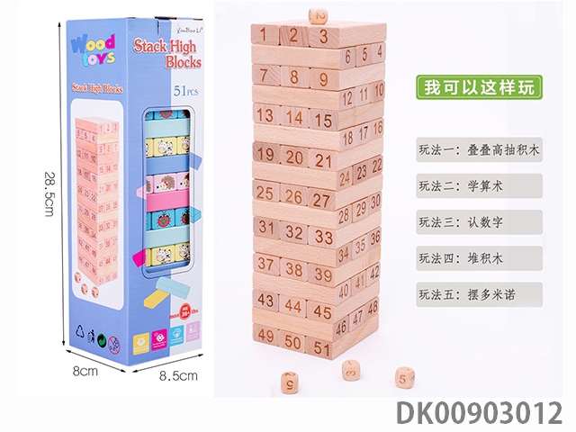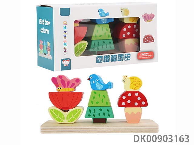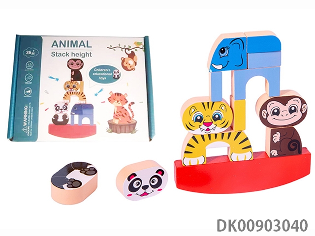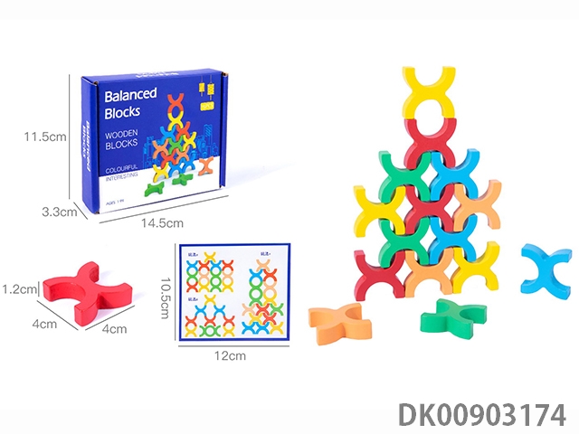 Wooden balanced stacked high building blocks