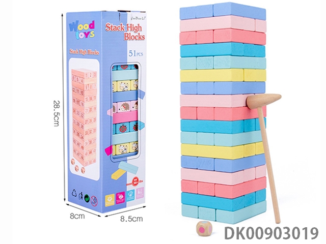 Wooden push tower cube building blocks