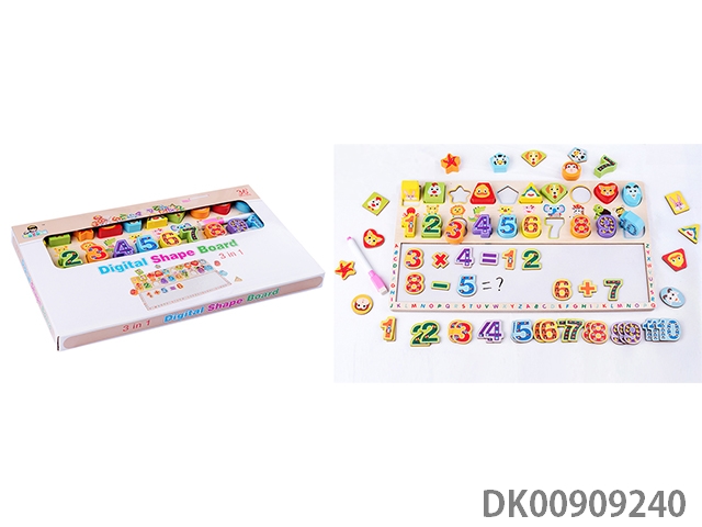 Wooden cartoon shape digital matching tablet 3-in-1