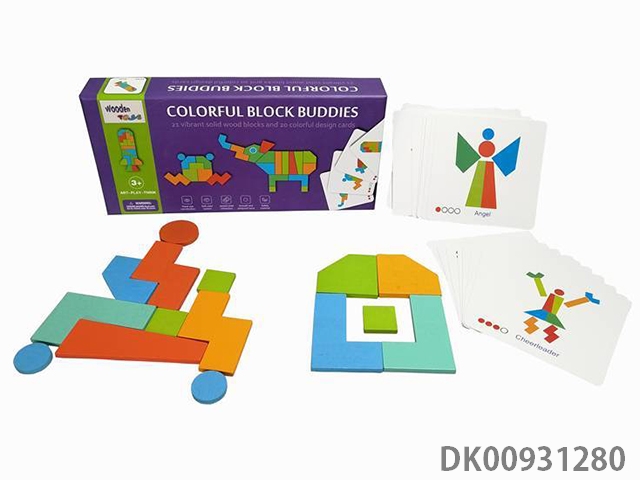 Wooden colorful building block puzzle