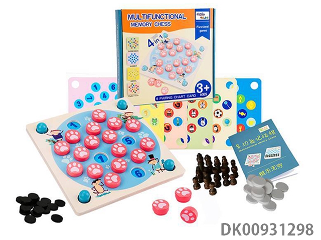 Wooden 4 in 1 memory chess