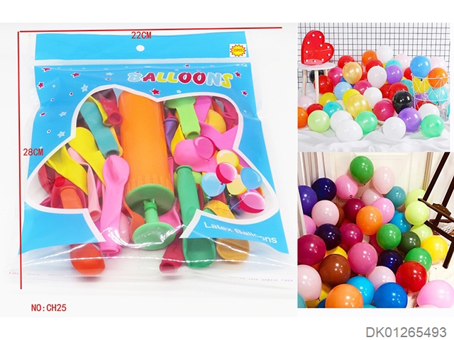 25 Round balloons and 1 pump