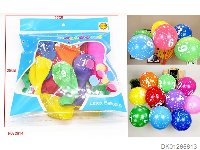 12 Number patterned balloons and 1 pump