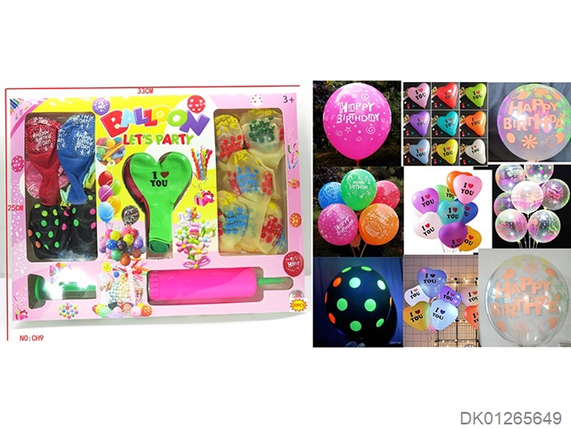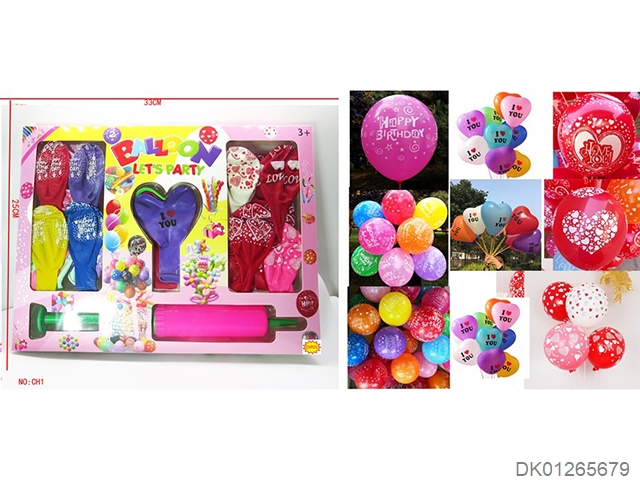 12 Ilovey patterned balloons and 1 pump