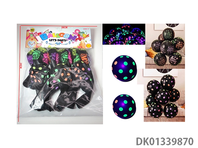 12 Black dots and english birthday pattern balloons