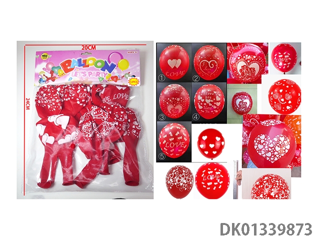 12 Red heart patterned balloons mixed together