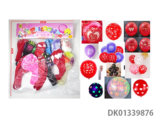 12 Patterned balloons mixed together