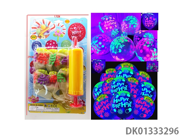 6 Fluorescent black birthday patterned balloons and 1 pump