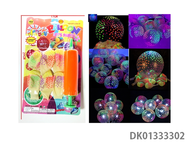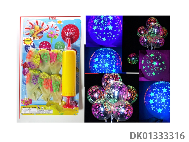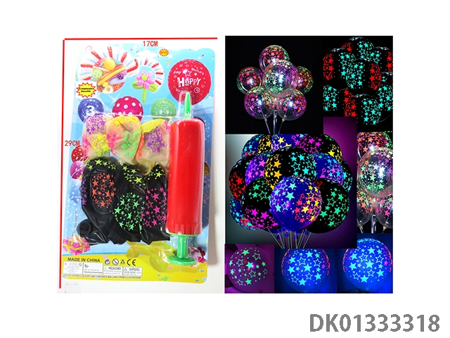 2 Mixed balloons with 6 fluorescent star patterns and 1 pump