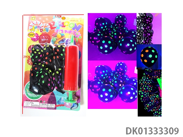 6 Fluorescent black dot balloons and 1 pump