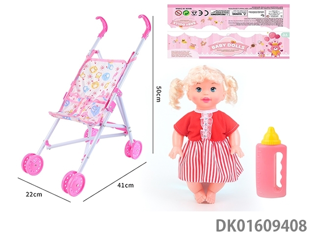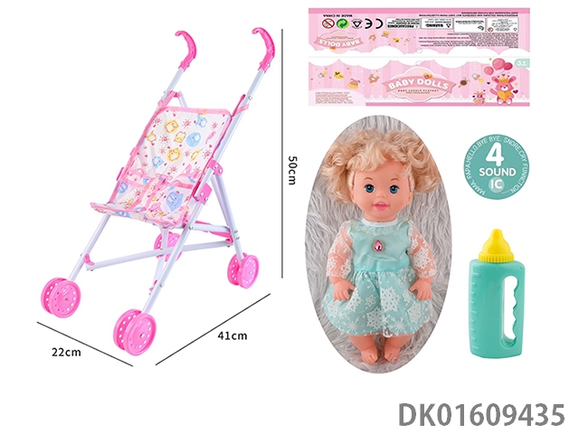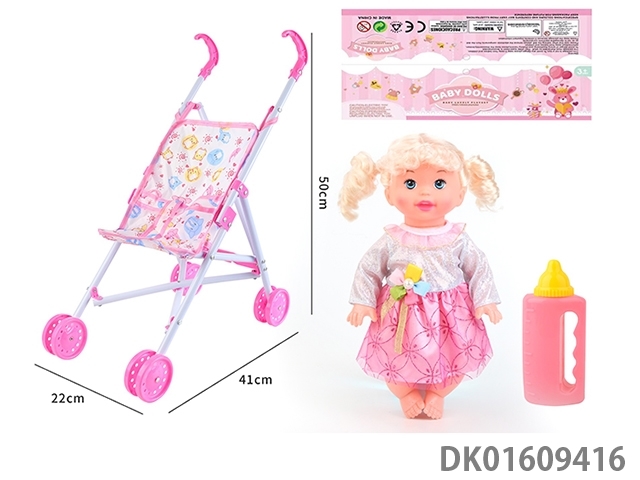 Plastic cart and 14 inch doll with 4-speaker ic bottle