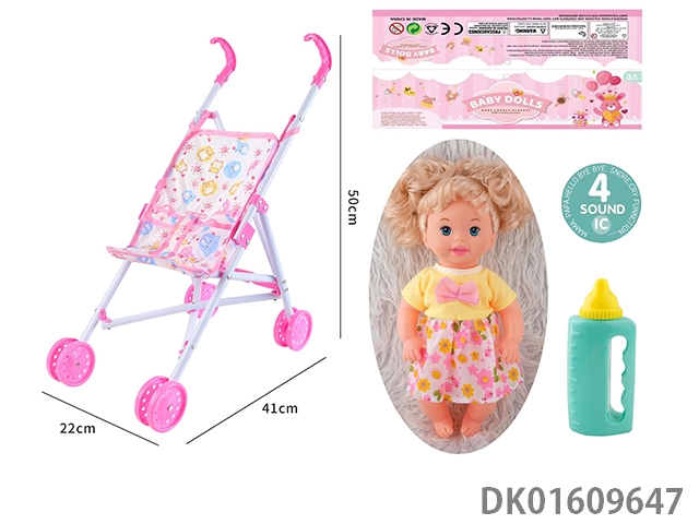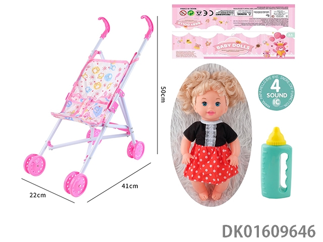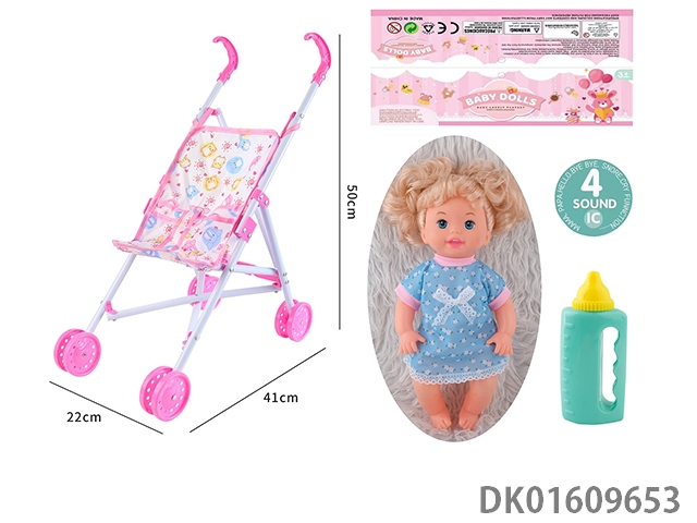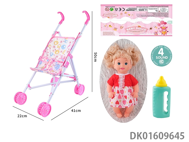 Plastic cart and 14 inch doll with 4-speaker ic bottle