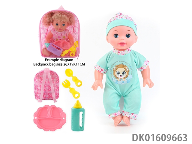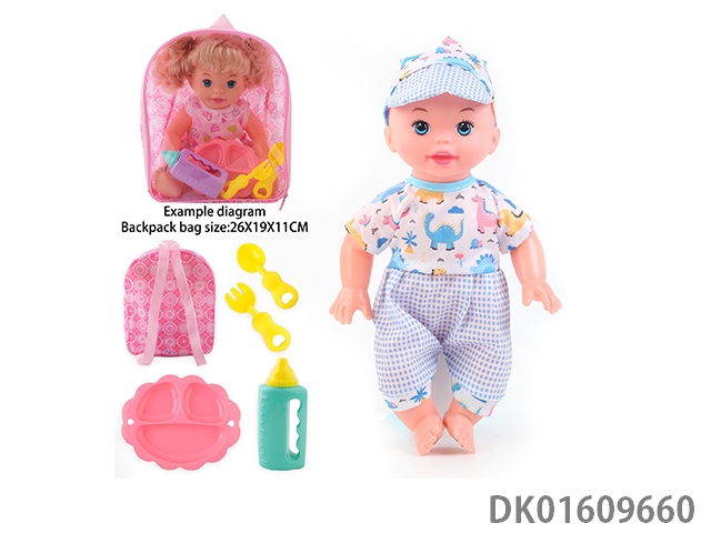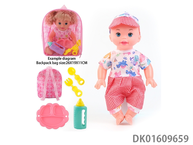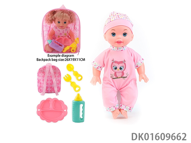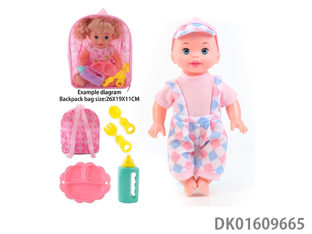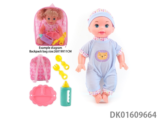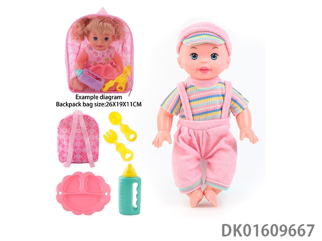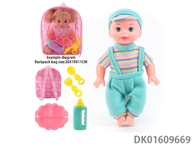 14 Inch doll with 4-speaker ic bottle, tray fork spoon