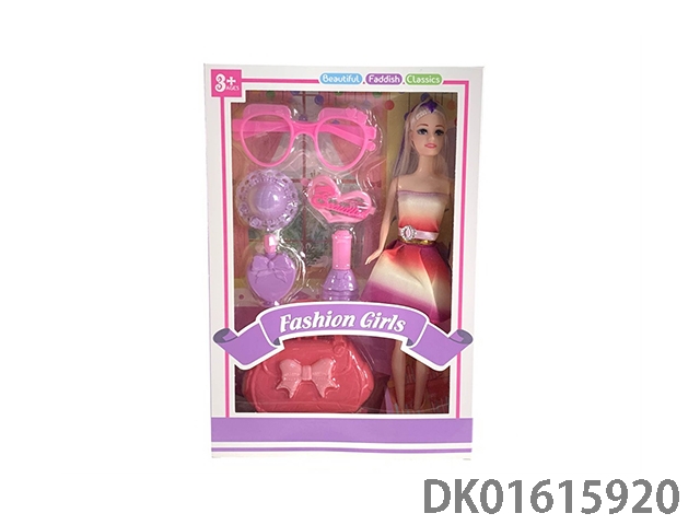 Thigh 11.5 full body fashion barbie doll girl with glasses and hat and hairpin, perfume bottle and handbag (fashion barbie princess doll)