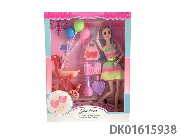 Active joints 11.5 inch long braid fashion barbie doll girl with shopping cart and balloon and handbag and camera and perfume bottle (fashion barbie princess doll)
