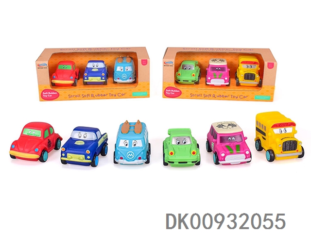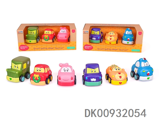 3 Plastic lined cartoon cars (soft rubber sliding) 2 mixed 3pcs / box