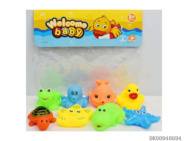 Yellow duckling orange dolphin frog. blue pentagram blue eight claws tortoise. yellow five star fish light green crocodile