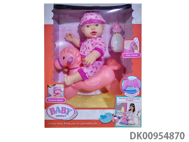 The new 14 inch enamel baby drinks water and urinates, with lights, music, shaking horses and milk bottles