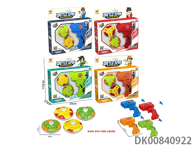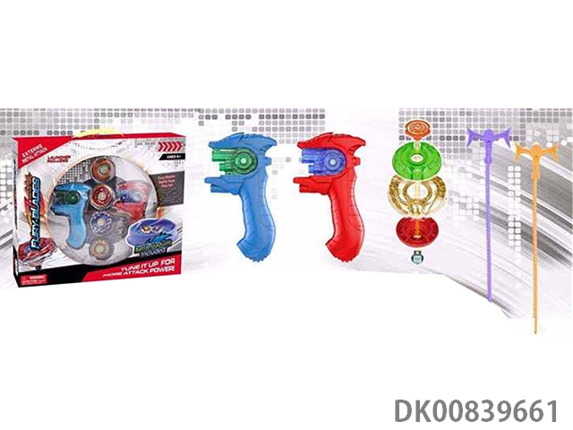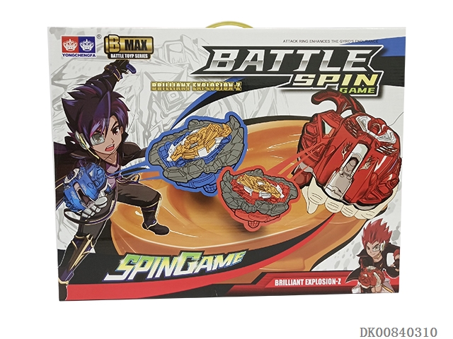 2 Explosive spinning gyroscopes packaged in box (handle with light and sound, inside with combat disk)