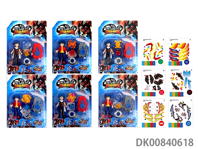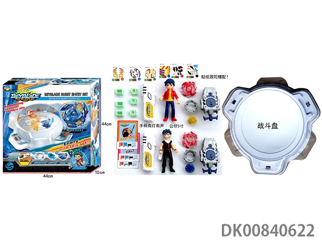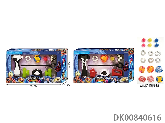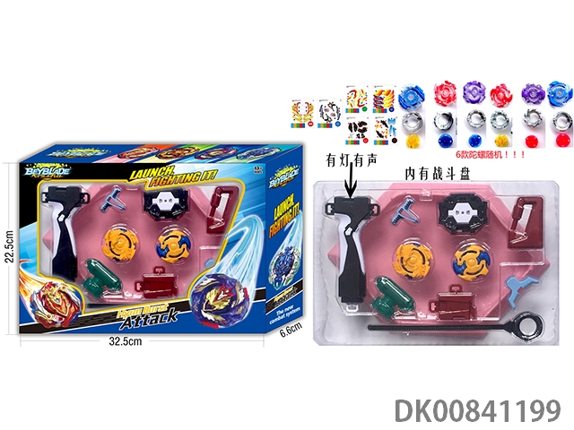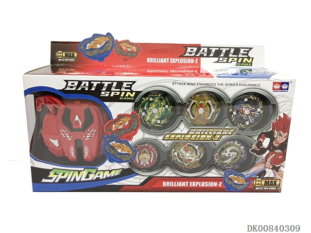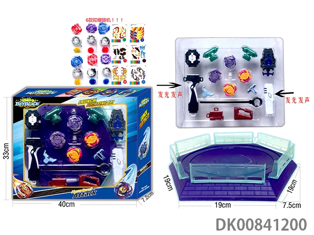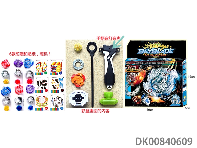 Explosive spinning gyroscope set (handle with light and sound) (6 gyroscopes and stickers)