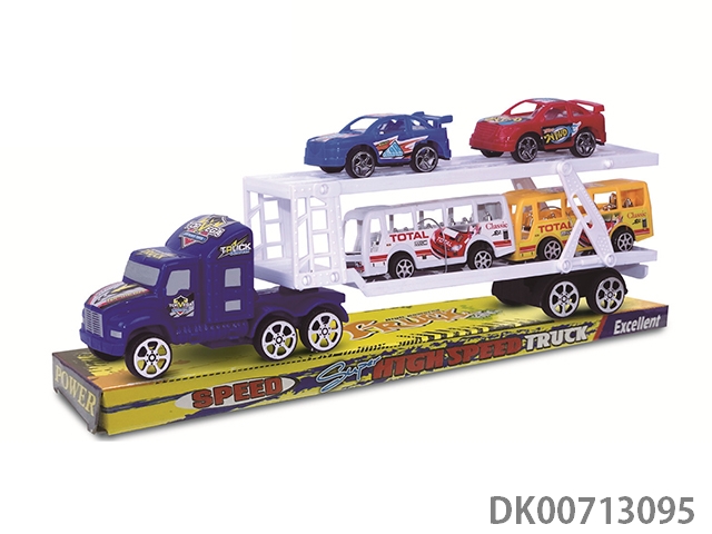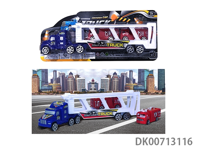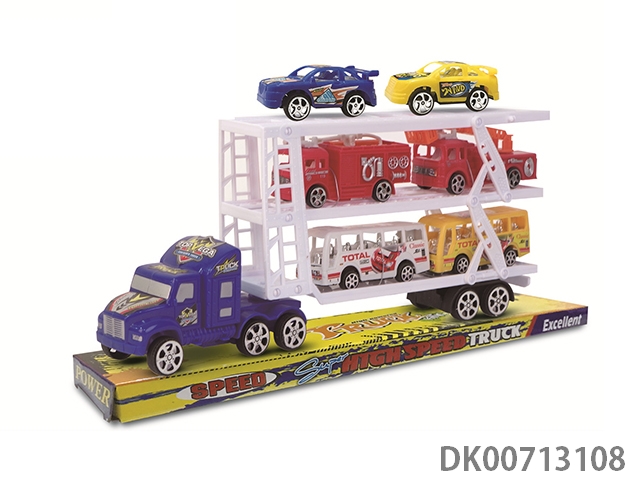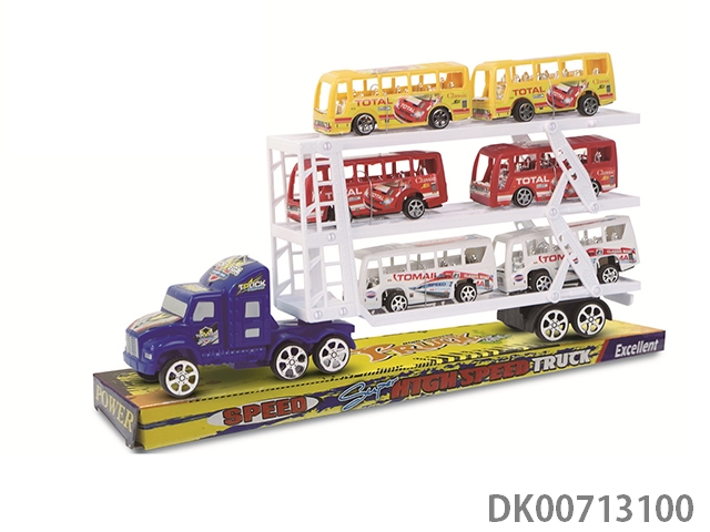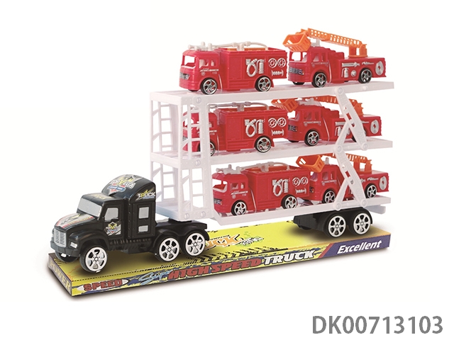 Inertia tractor carries 2 bus cars, 2 racing cars and 2 fire engines