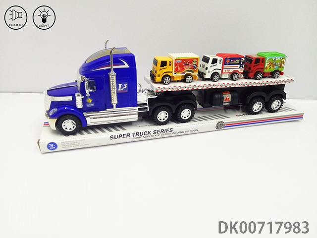 Inertia tractor towing 3 taxiing container trucks with light and music