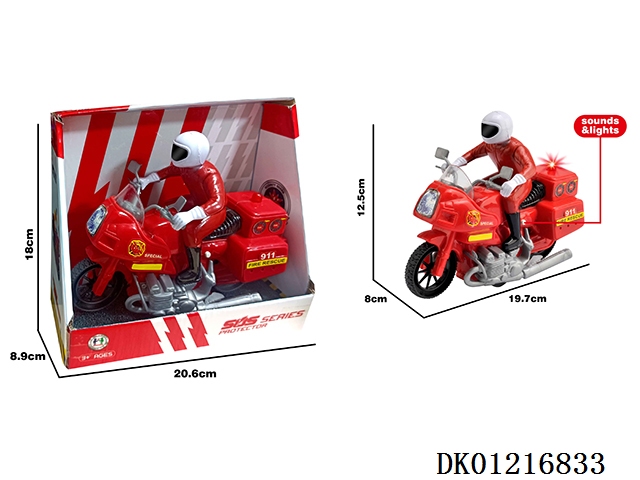 Fire protection motorcycle/inertia (including two ag13 batteries, with light and sound), motorcyclist