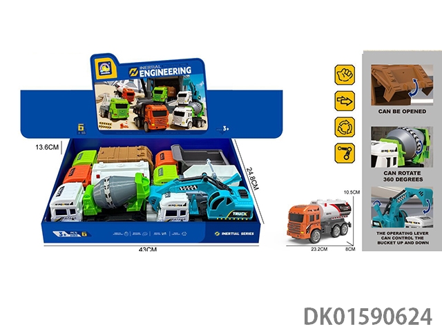 Inertial sound and light engineering vehicle, 6 mixed models, 6 pieces/box
