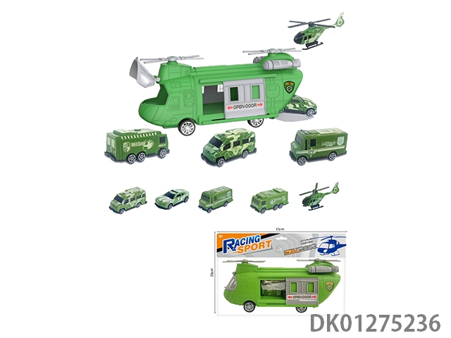 Storage of military scene inertial transport aircraft and 5 helicopter vehicles