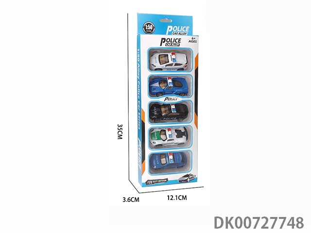 5 Strip mounted 1:50 recoil alloy police cars (6 mixed)