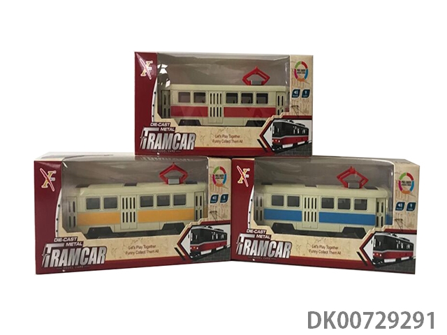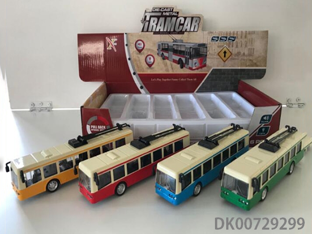 1: 90 Alloy bus trolley car, 3 door, light with sound and light (6 in a display box, 1 in 3 colors)
