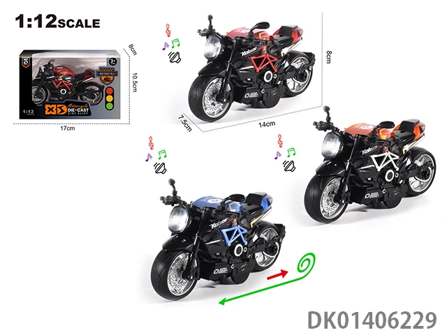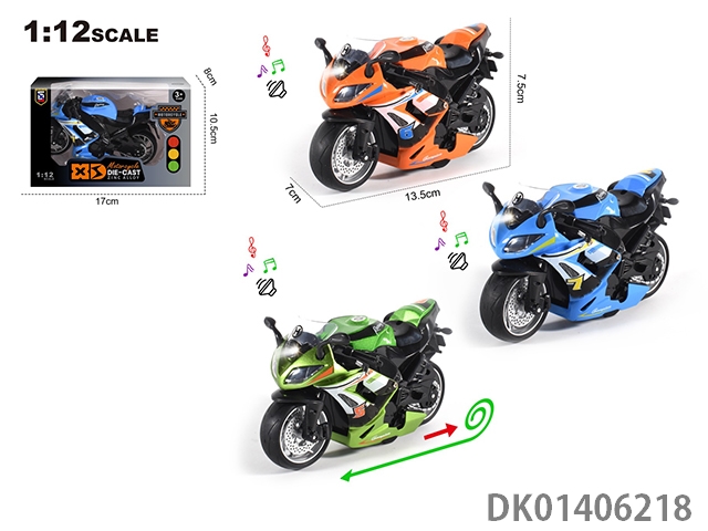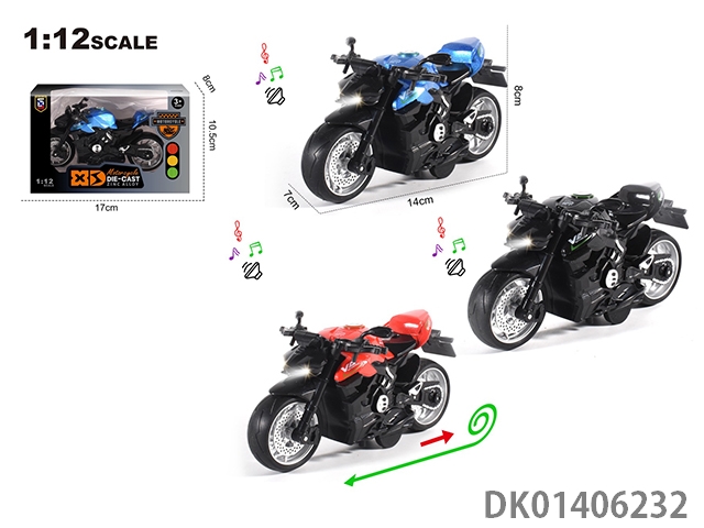1: 12 Alloy regenerative gusta motorcycle with lights, music, and 3 colors mixed (without helmet)